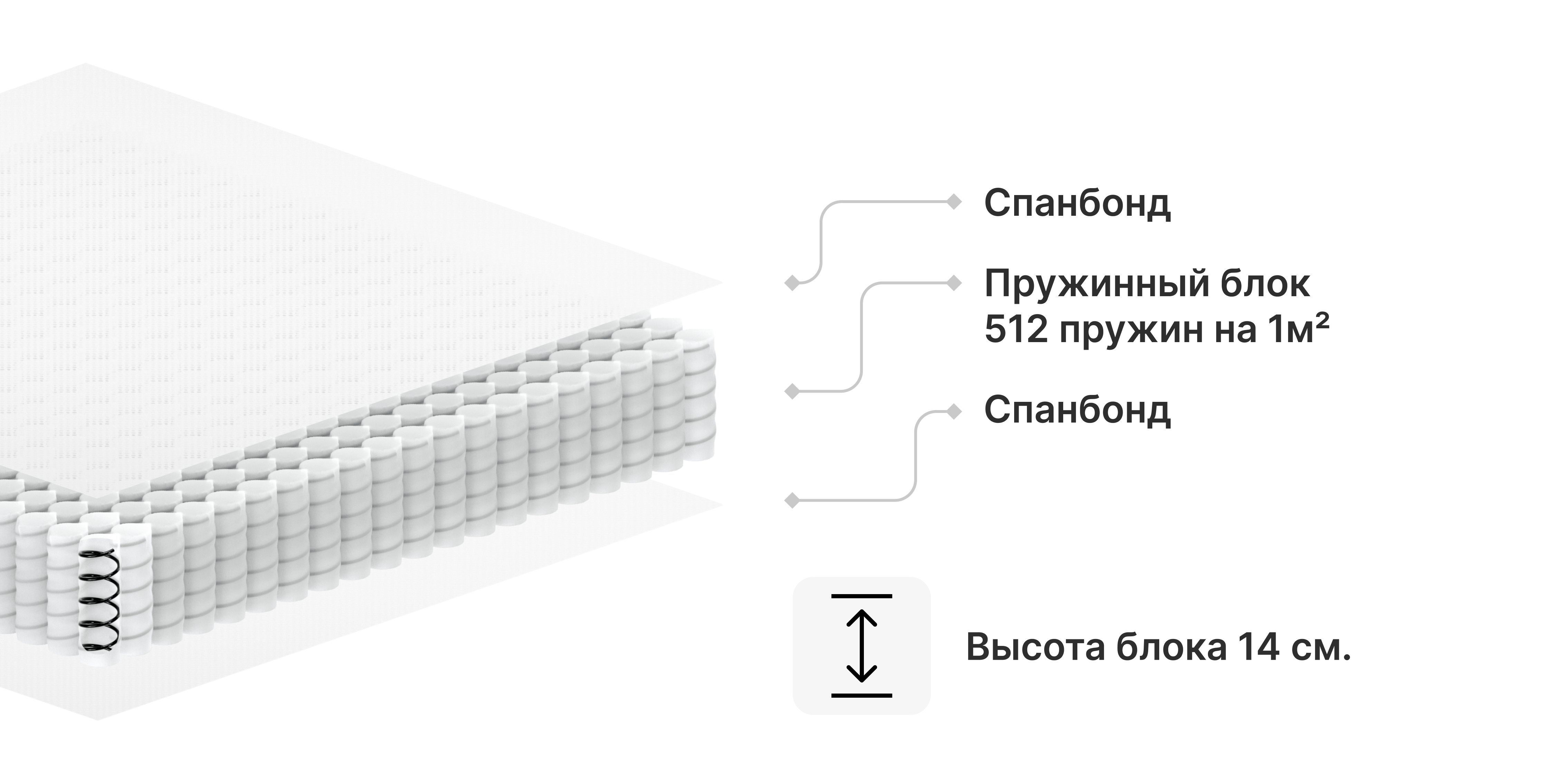 Блок независимых пружин 512 - широко применяется при изготовлении матрасов и диванов, эффективно подстраивается под вес тела, поддерживает позвоночник в правильном положении. Каждая пружина заключена в отдельный "стакан" из спанбонда и работает независимо от других пружин в блоке при эксплуатации матраса.