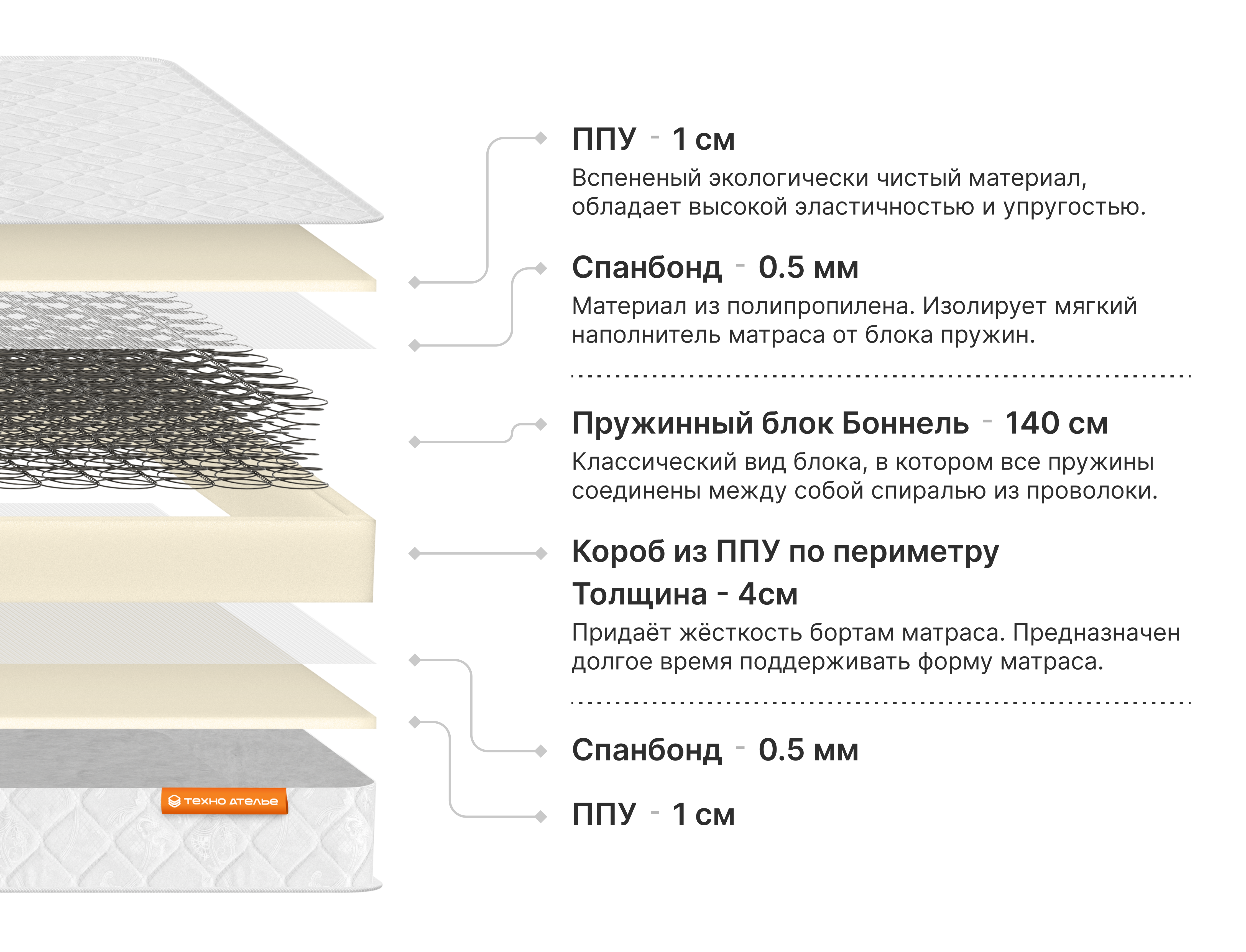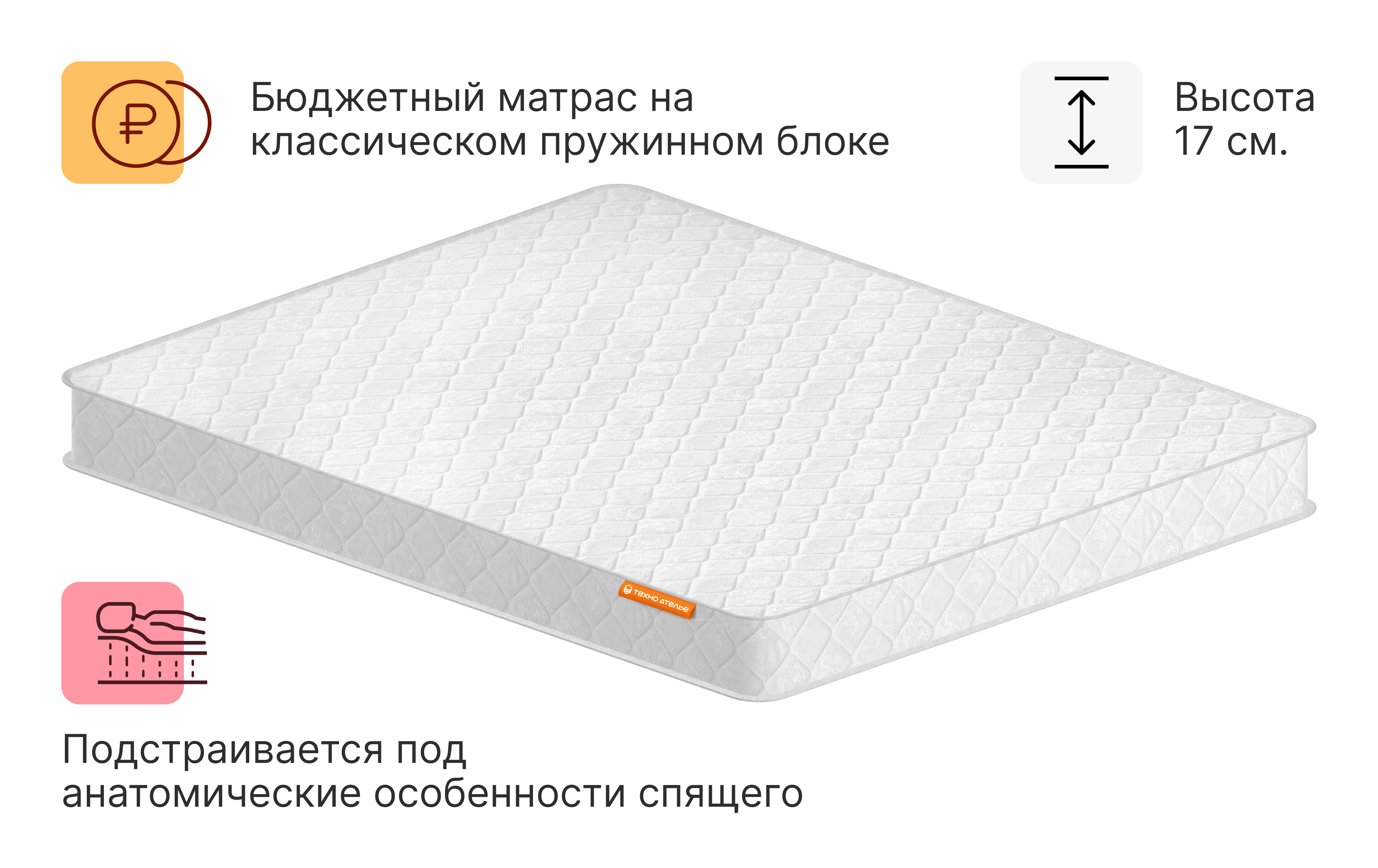 Экономичный матрас на основе классического пружинного блока. Долговечный и надежный. С отличной анатомической поддержкой.