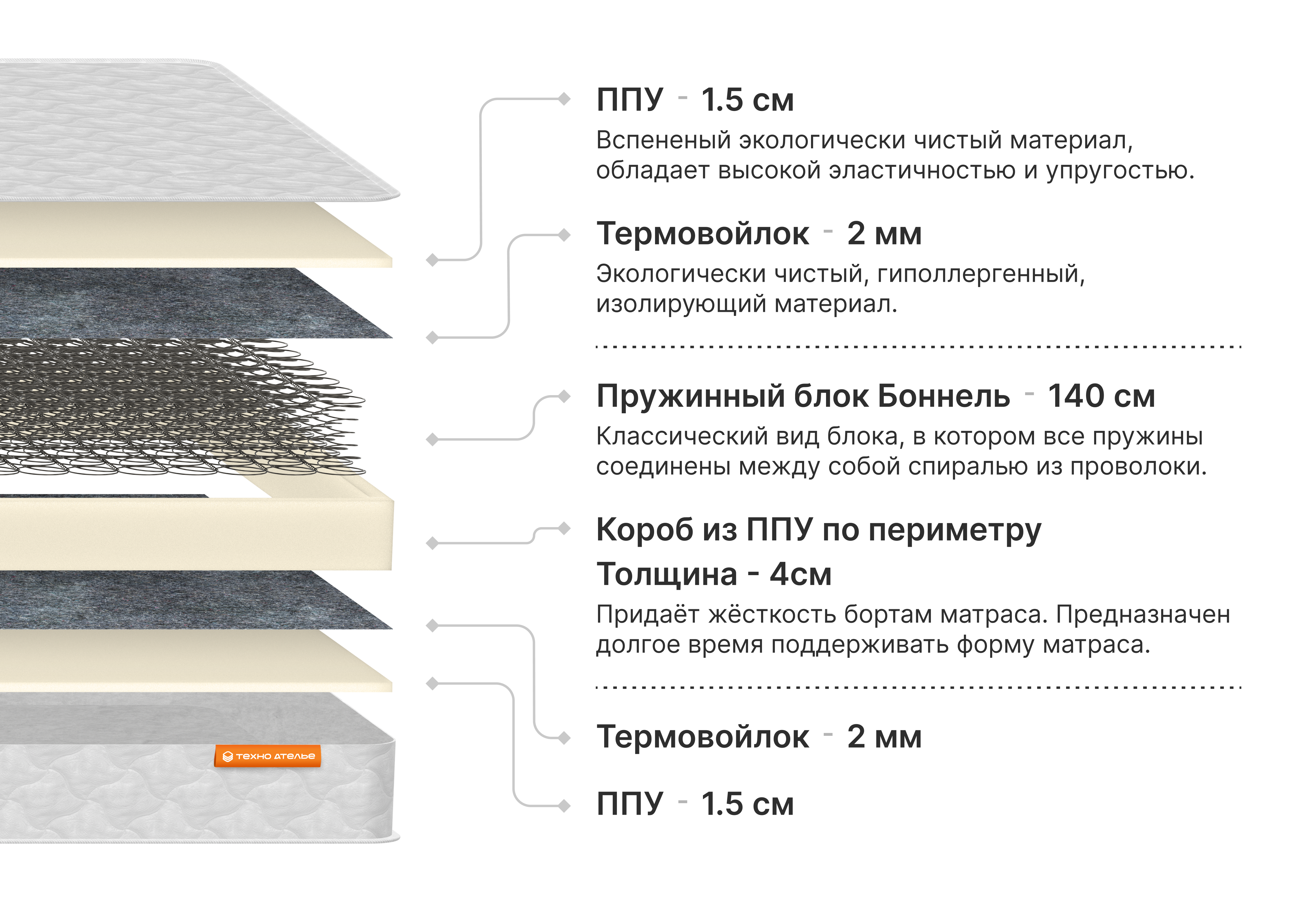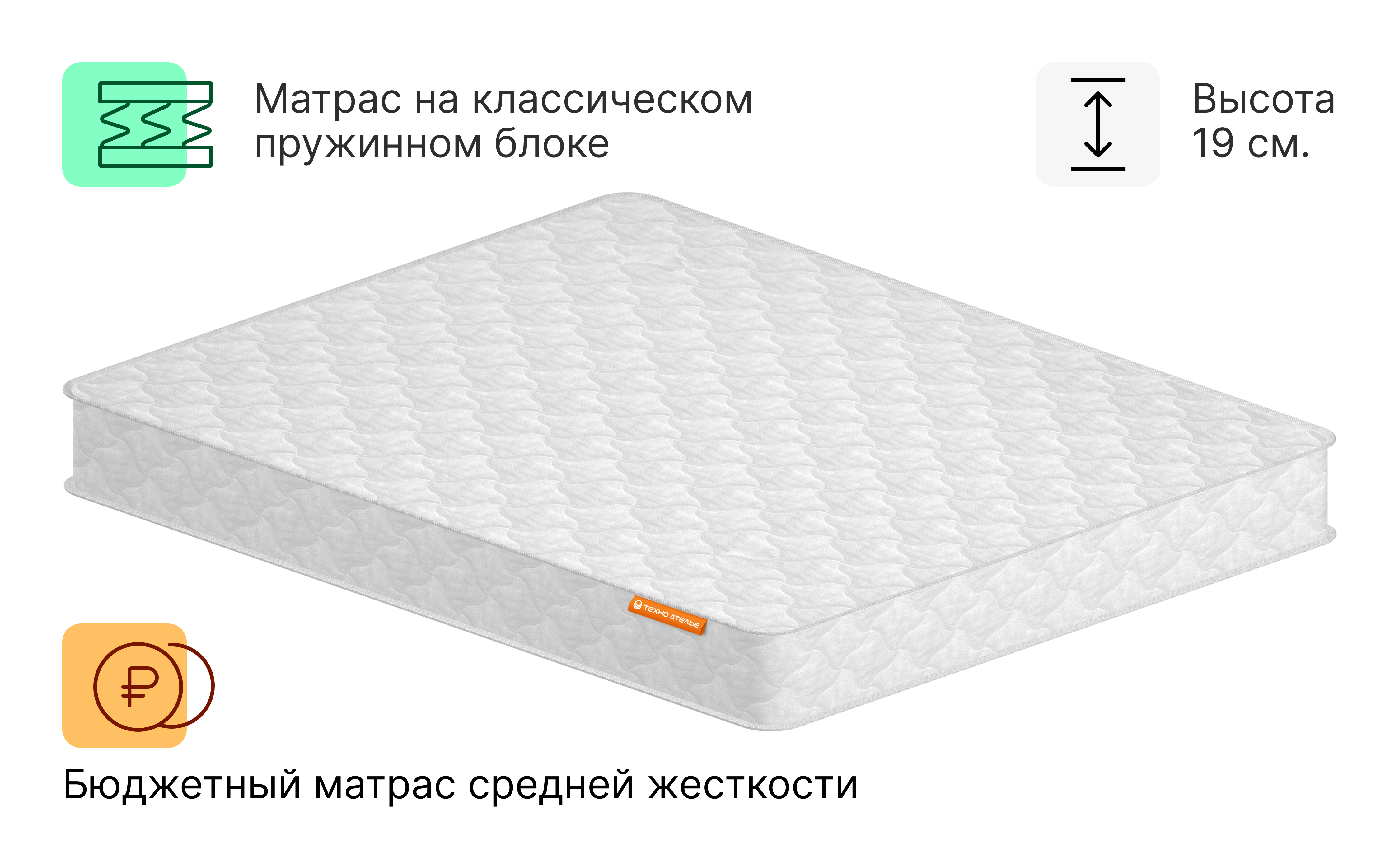 Экономичный матрас на основе классического пружинного блока и ППУ. Долговечный и надежный. С отличной анатомической поддержкой.
