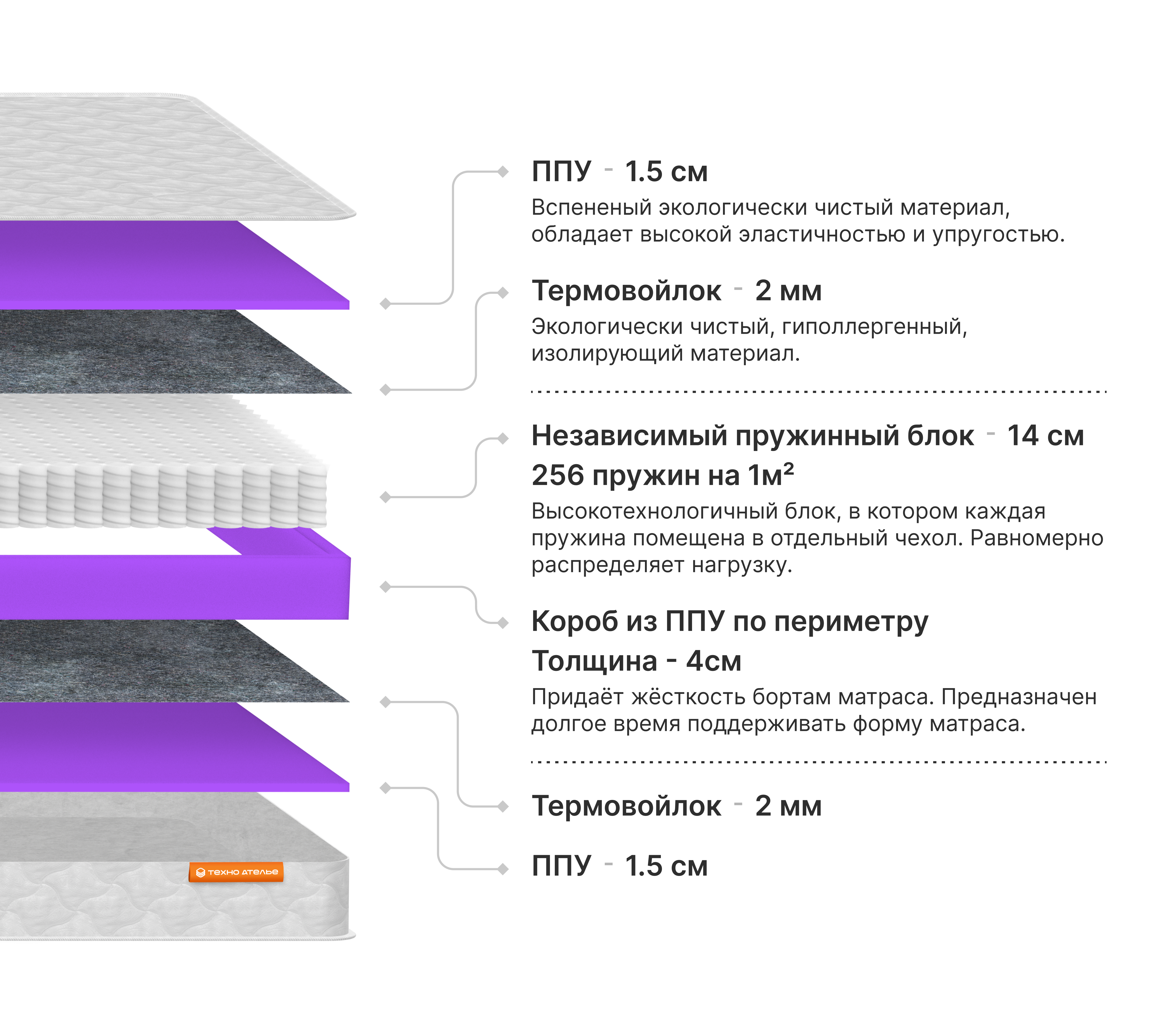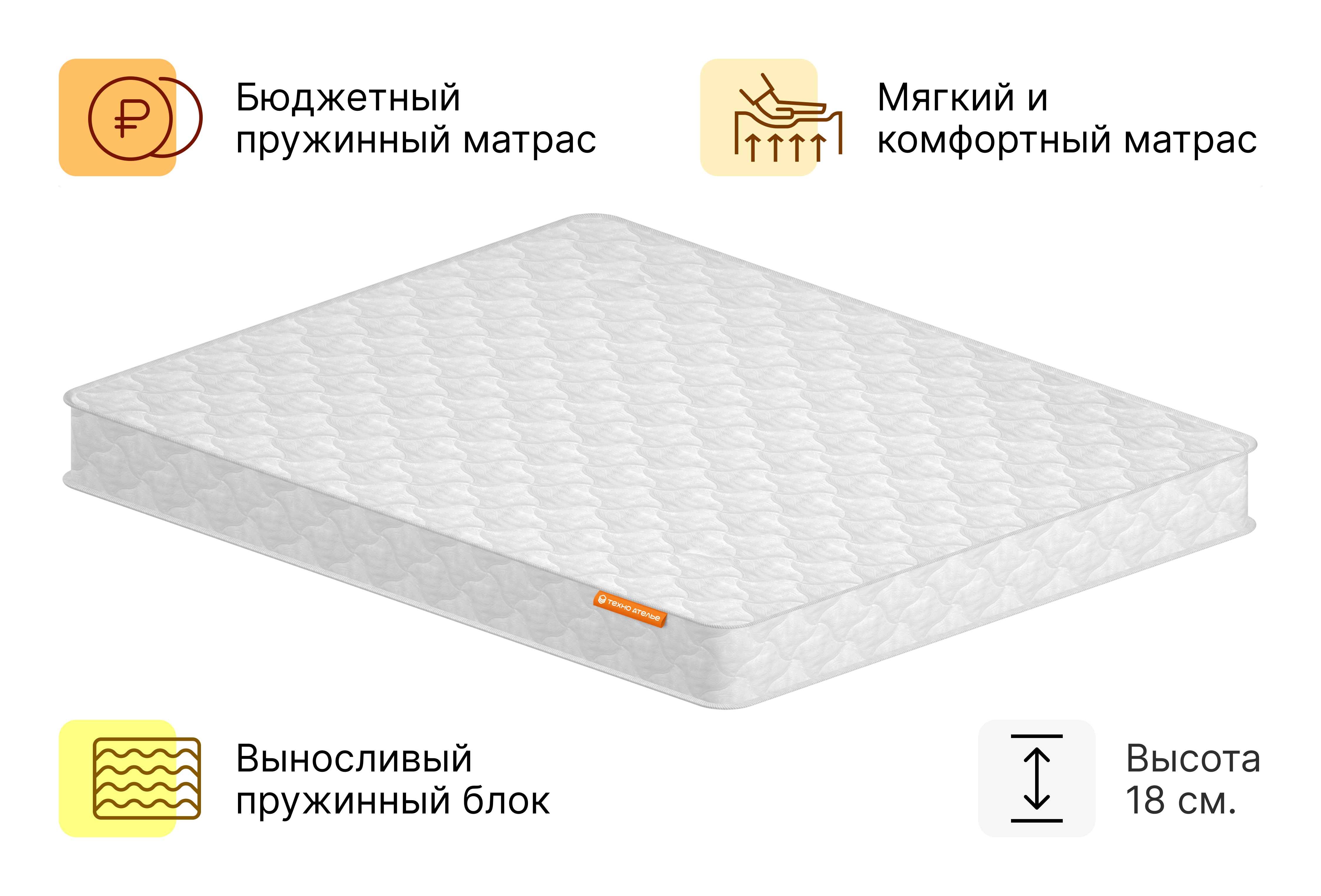 Экономичный матрас на основе классического пружинного блока и ортопедической пены. Долговечный и надежный. С отличной анатомической поддержкой.