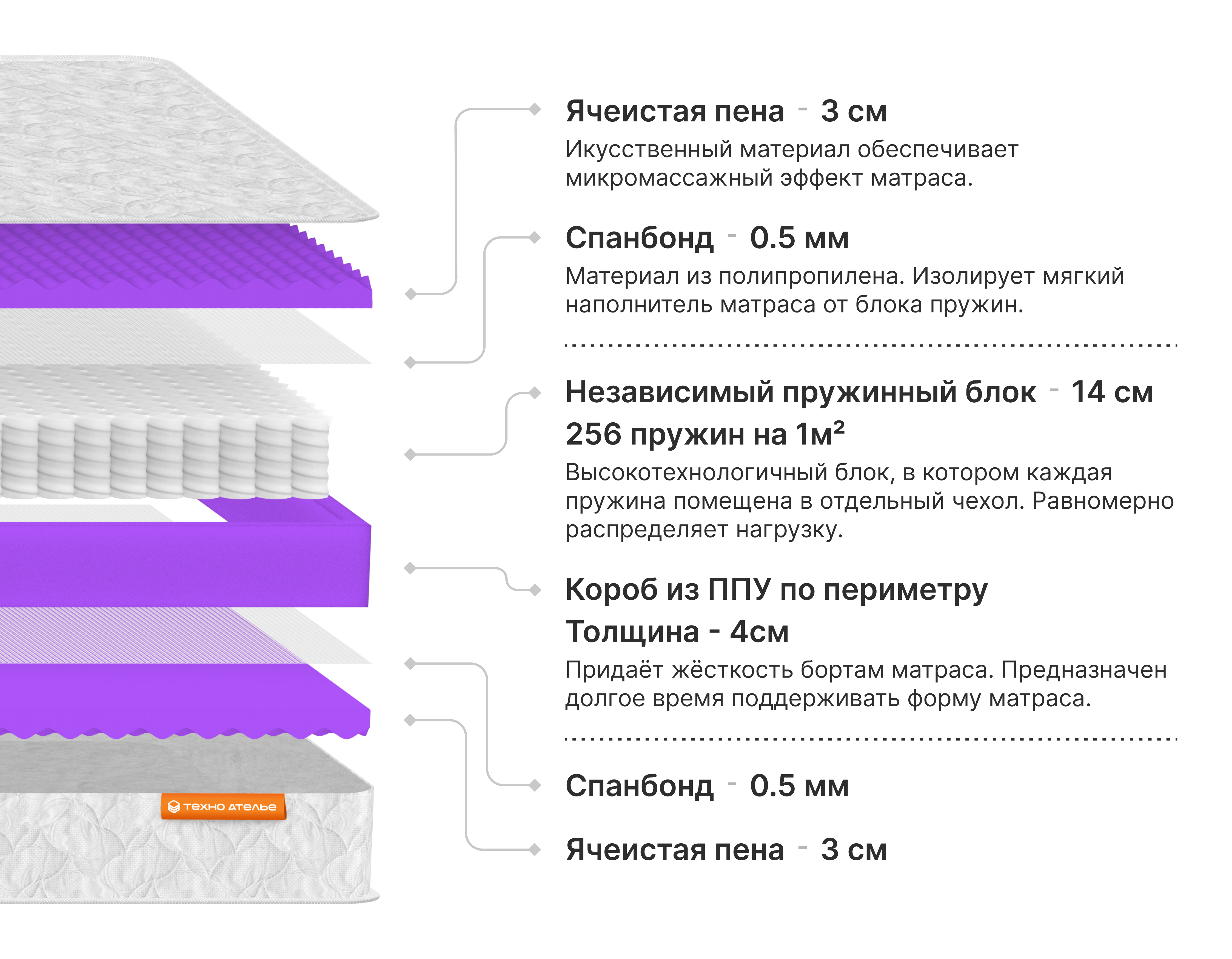 Отличный матрас, средней жёсткости, спать очень удобно, покупала после операции на позвоночнике. Быстро доставили, что понравилось.