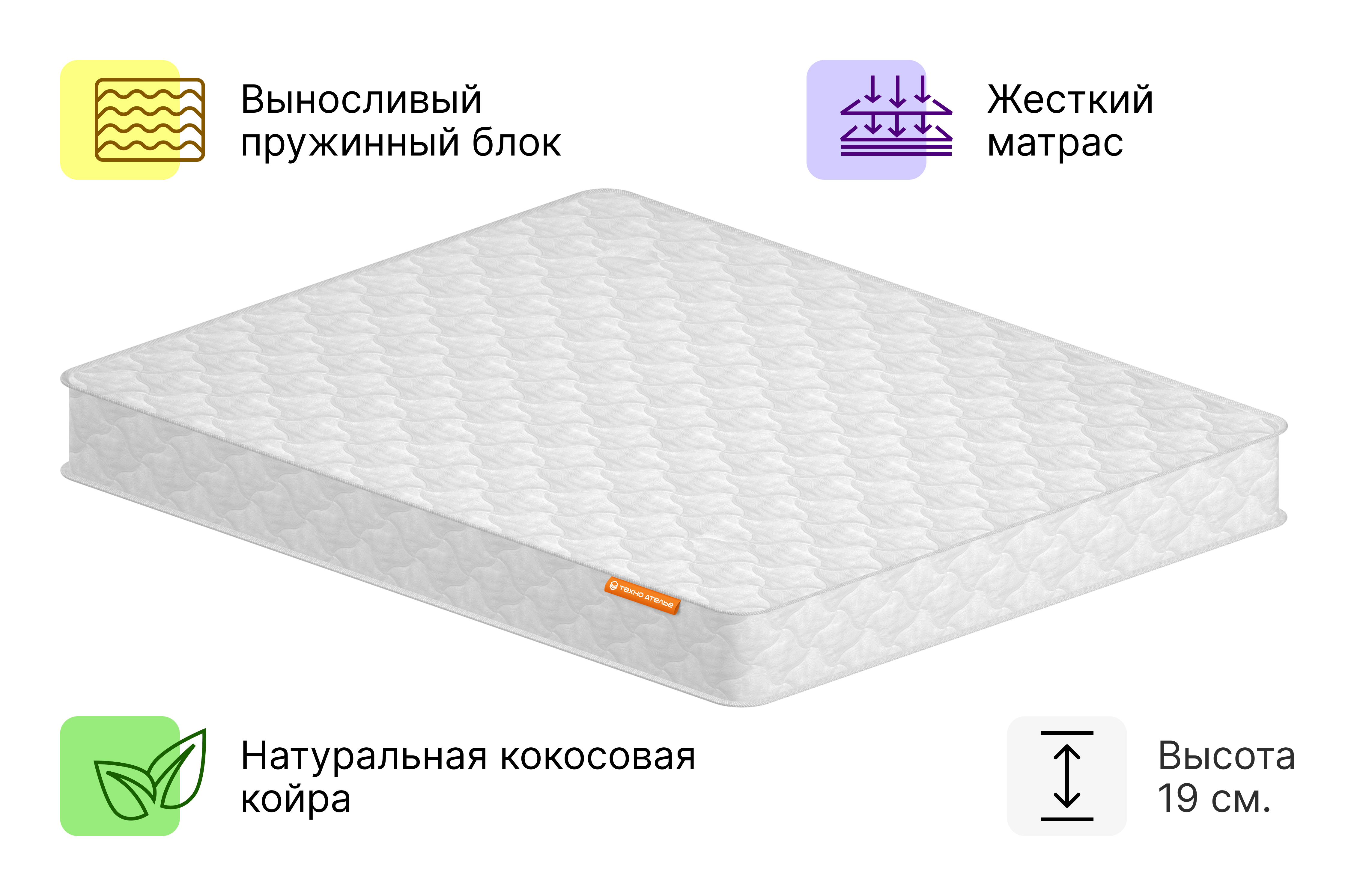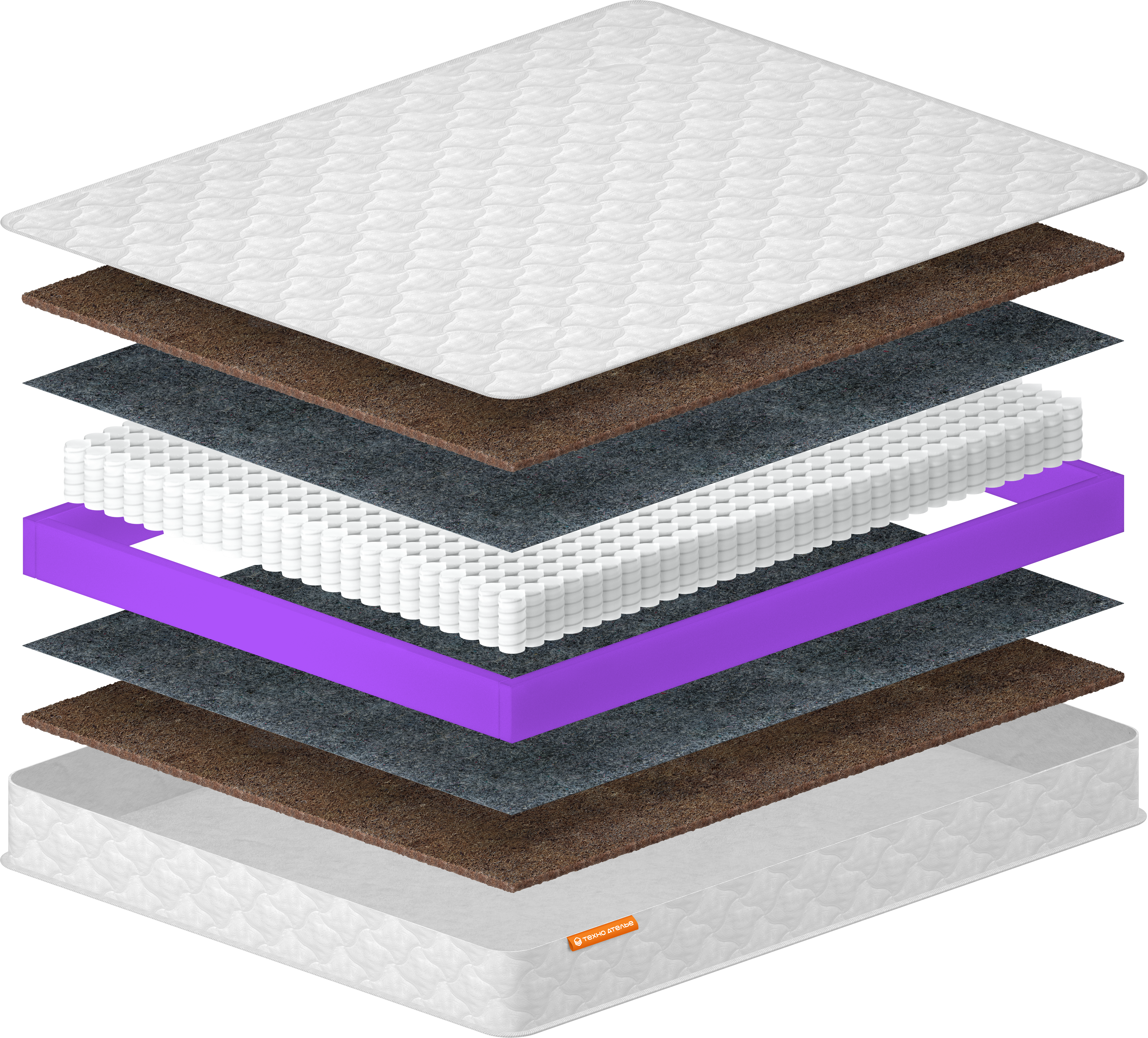 Экономичный матрас на основе классического пружинного блока и кокосовой койры. Долговечный и надежный. С отличной анатомической поддержкой.