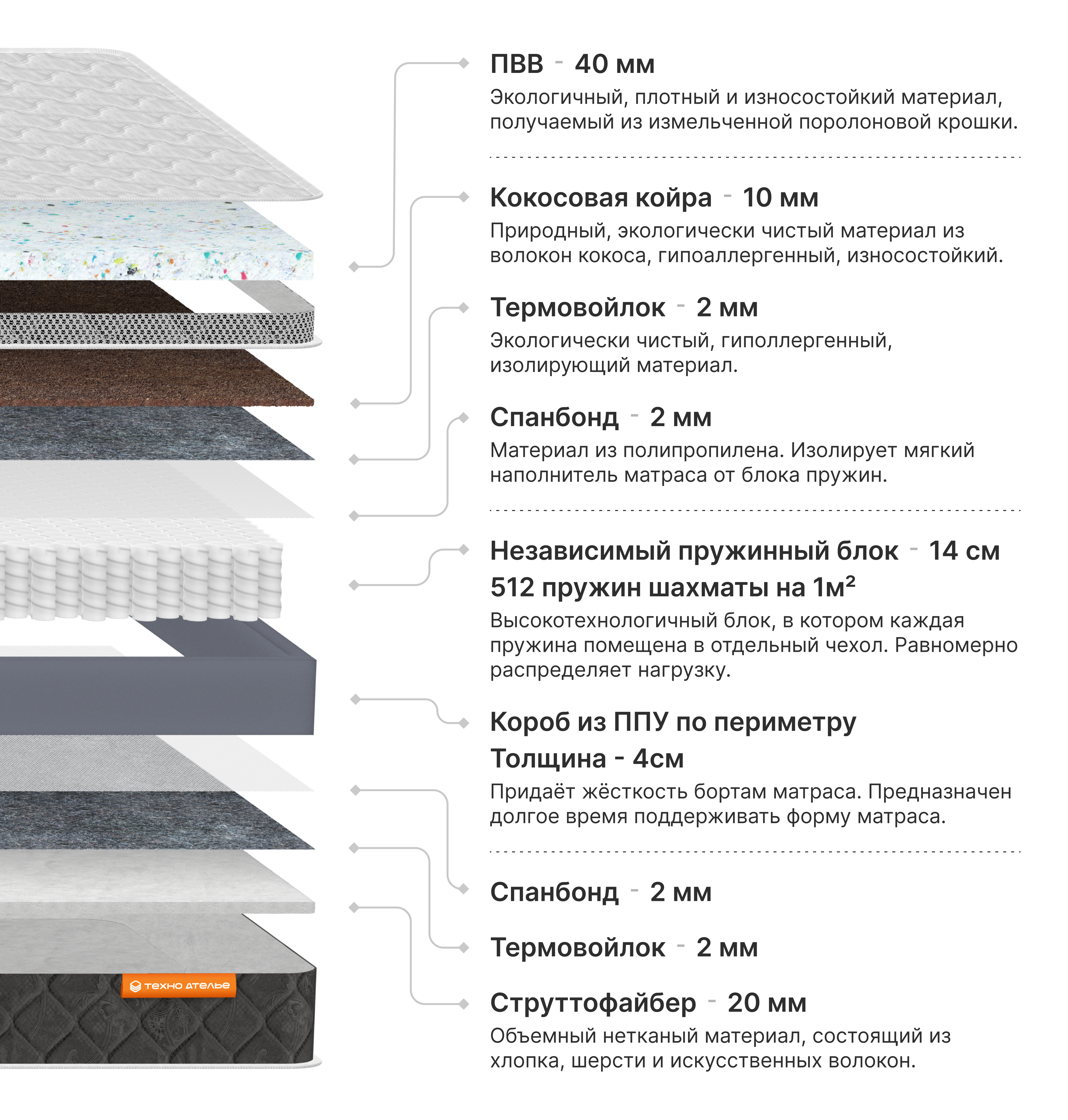 Уникальный матрас с идеальной конструкцией в безупречном исполнении. Материалы в комфортных слоях матраса и независимый пружинный блок Шахматы придают ему анатомические свойства, позволяя поддерживать позвоночник в оптимальном для здорового сна положении.