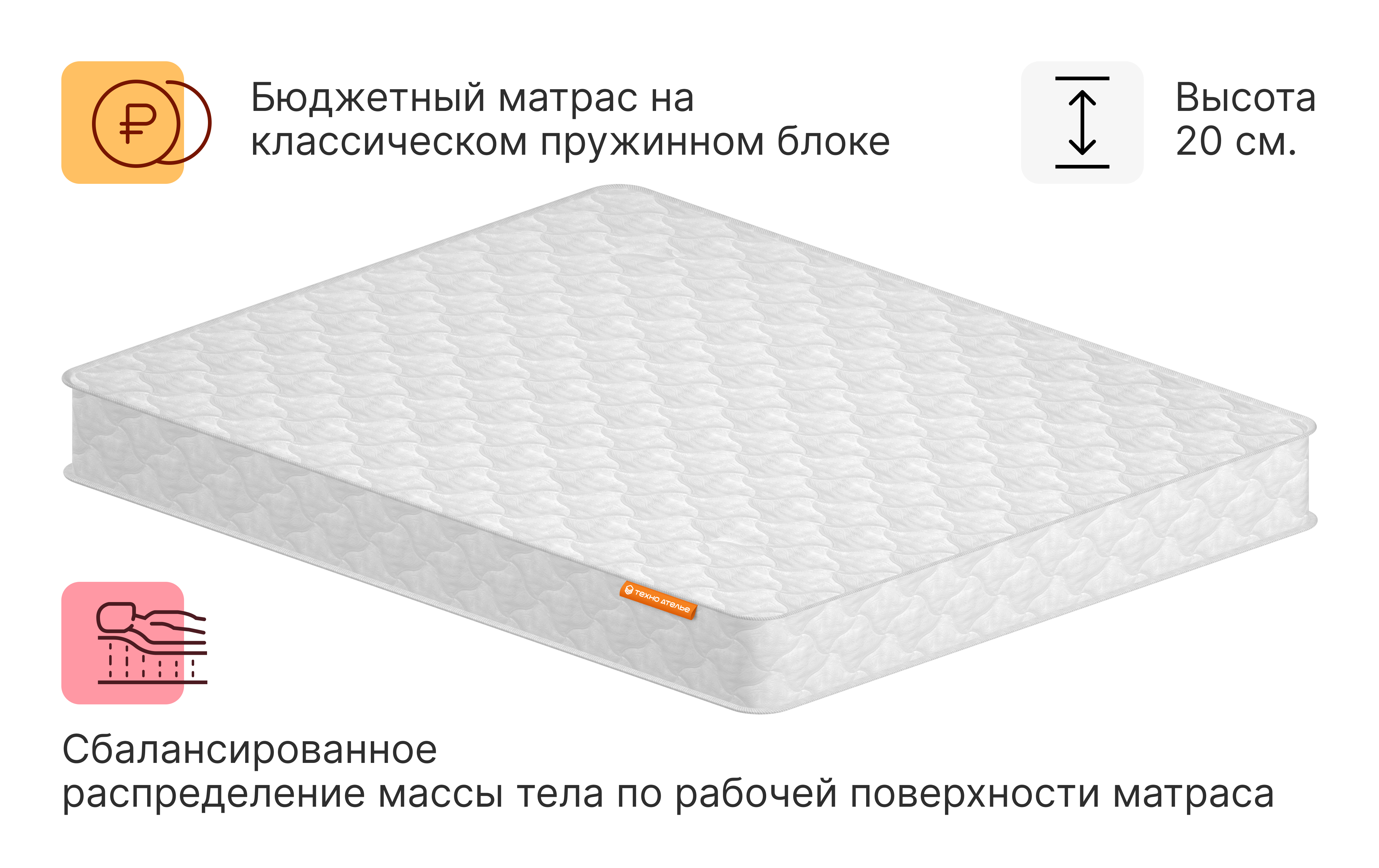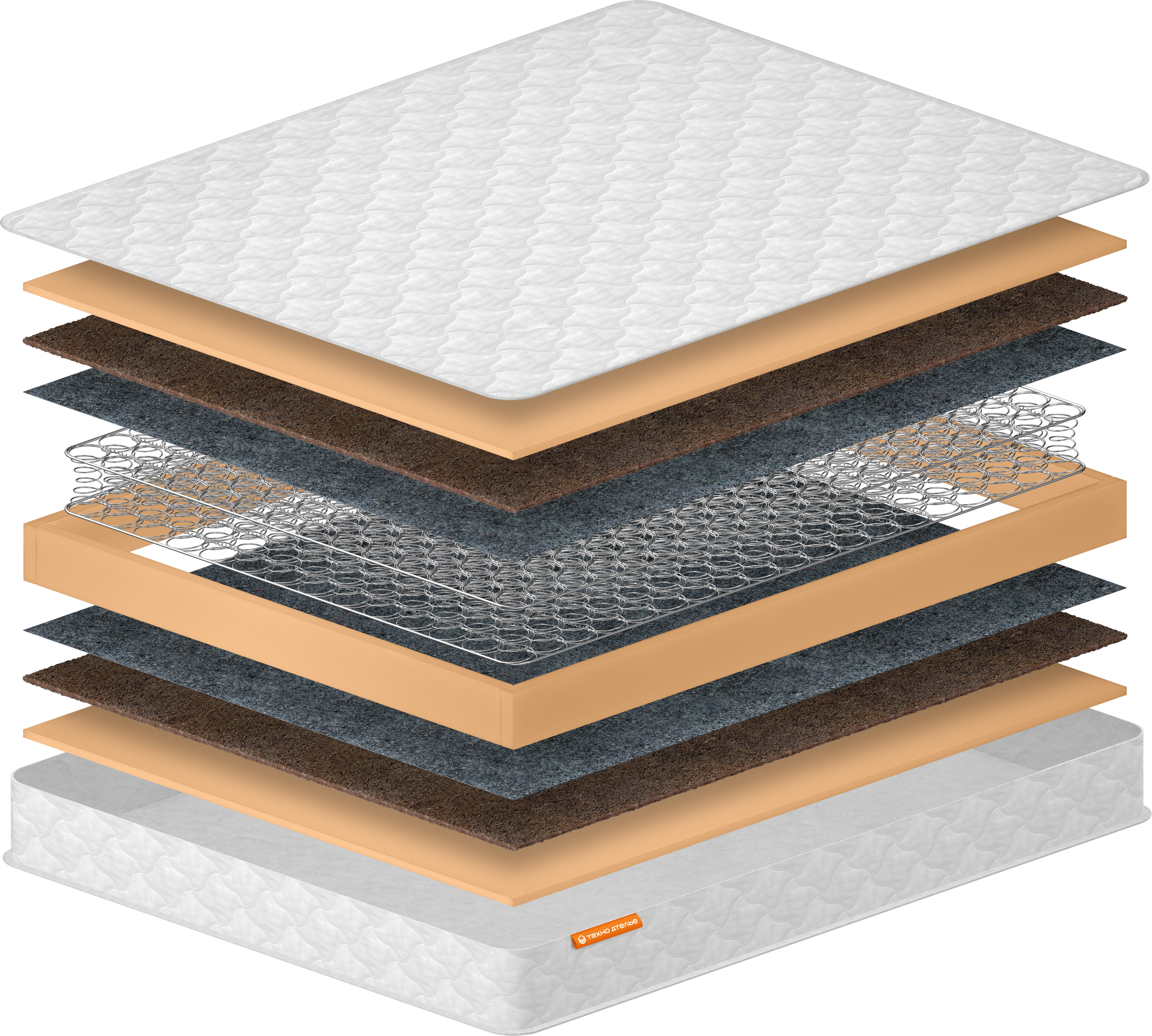 Экономичный матрас на основе классического пружинного блока, кокосовой койры и ППУ. Долговечный и надежный. С отличной анатомической поддержкой.