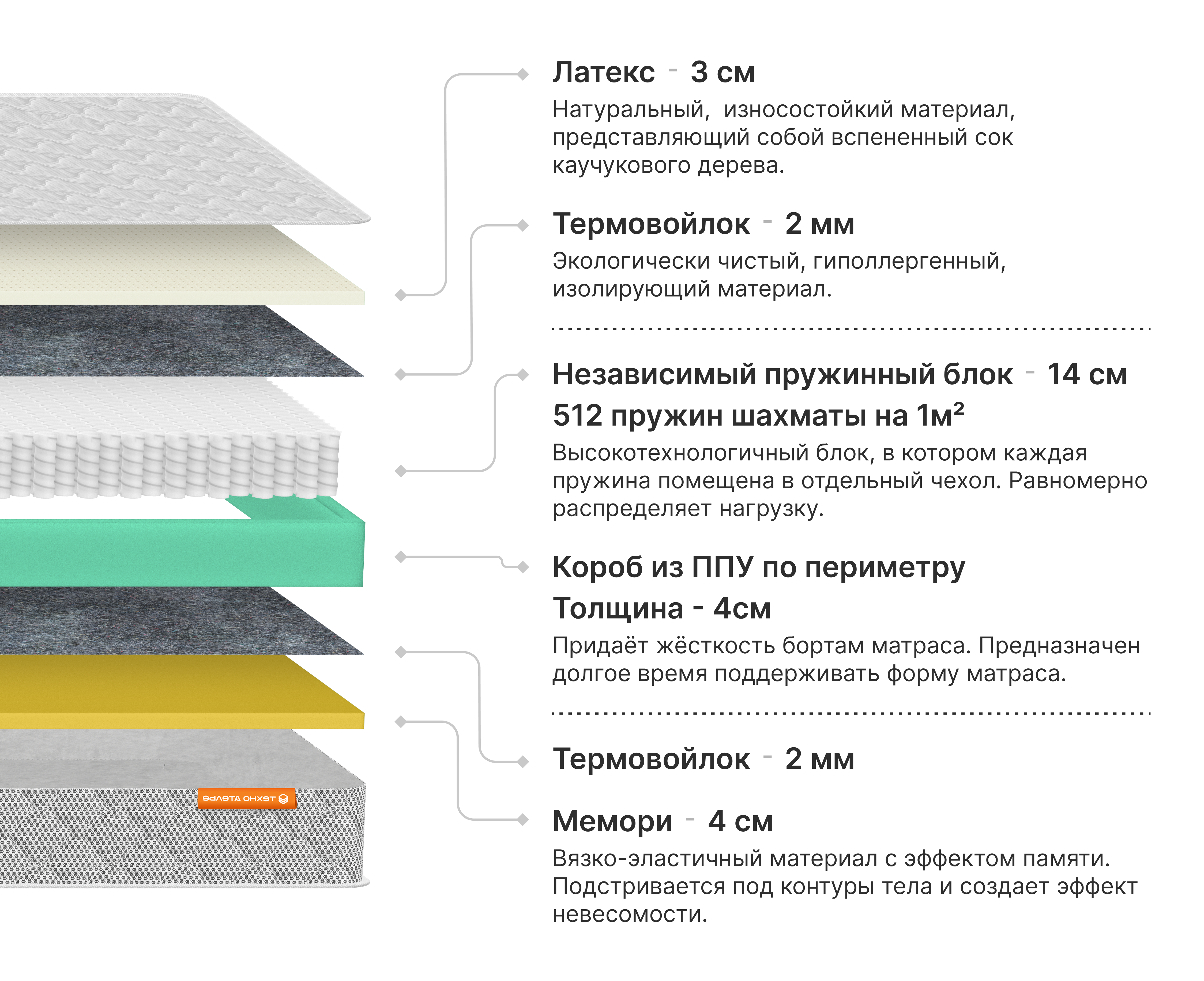 Мне понравилось подробное описание товара на сайте, менеджер по телефону также подробно проконсультировал. Матрасом в итоге очень довольны, спим с удовольствием!